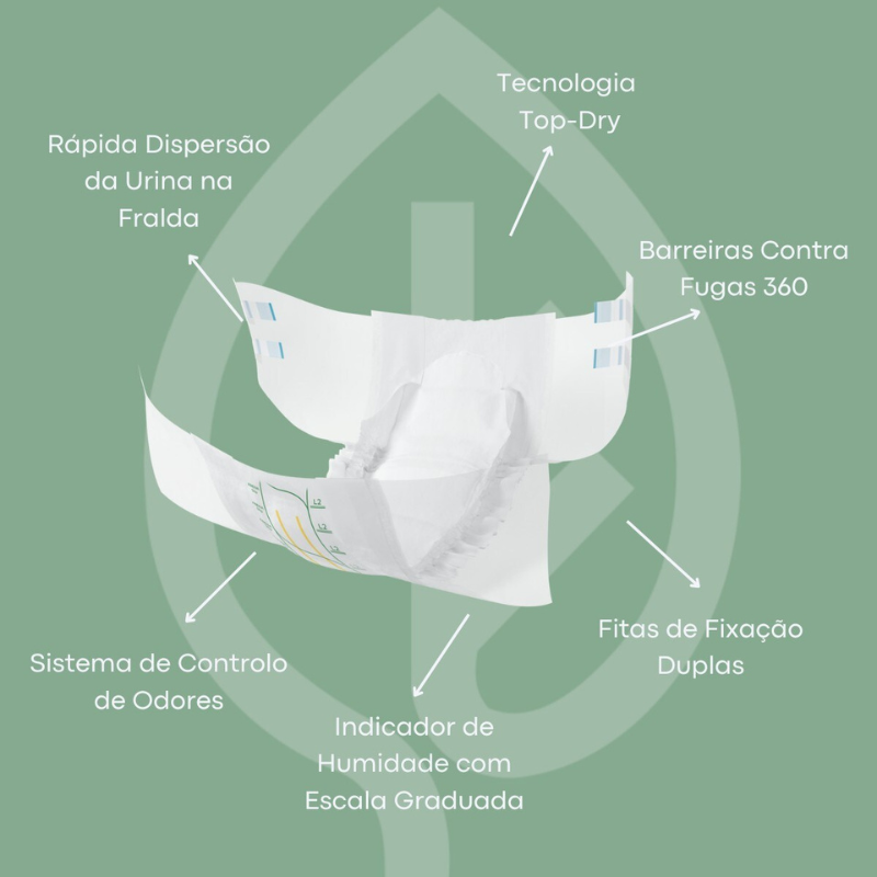 Tecnologia Top Dry: Absorve rapidamente a urina, mantendo a pele seca mesmo após várias utilizações.