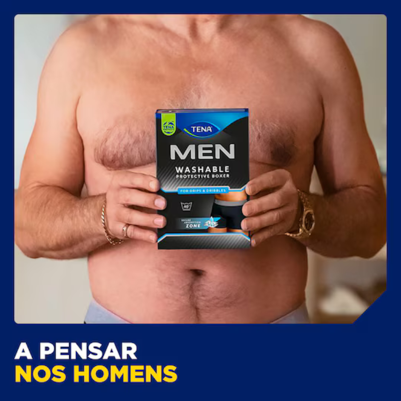 Os TENA Men Washable Protective Boxers são ideais para homens com perdas de urina ligeiras, oferecendo conforto e proteção de forma discreta e prática.