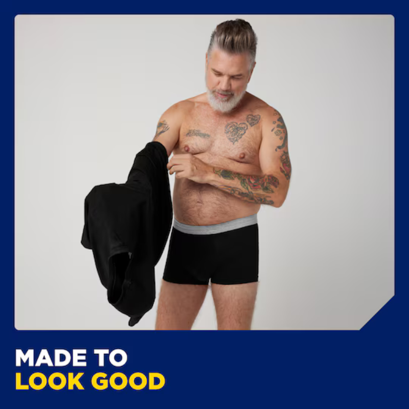 Os TENA Men Washable Protective Boxers são ideais para homens com perdas de urina ligeiras, oferecendo conforto e proteção de forma discreta e prática.