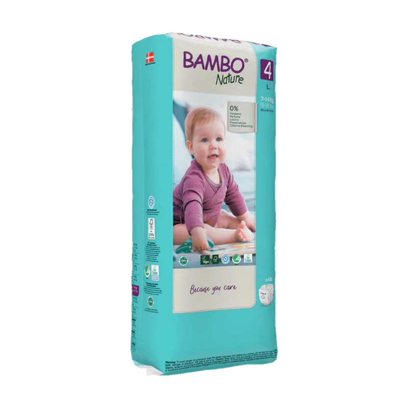 Bambo Nature Paper Bag 6 Pacotes: Fraldas T4 L (7-14kg) em embalagem de papel. Leva mais, gasta menos! Proteção ecológica, hipoalergénica e superabsorvente para o teu bebé.