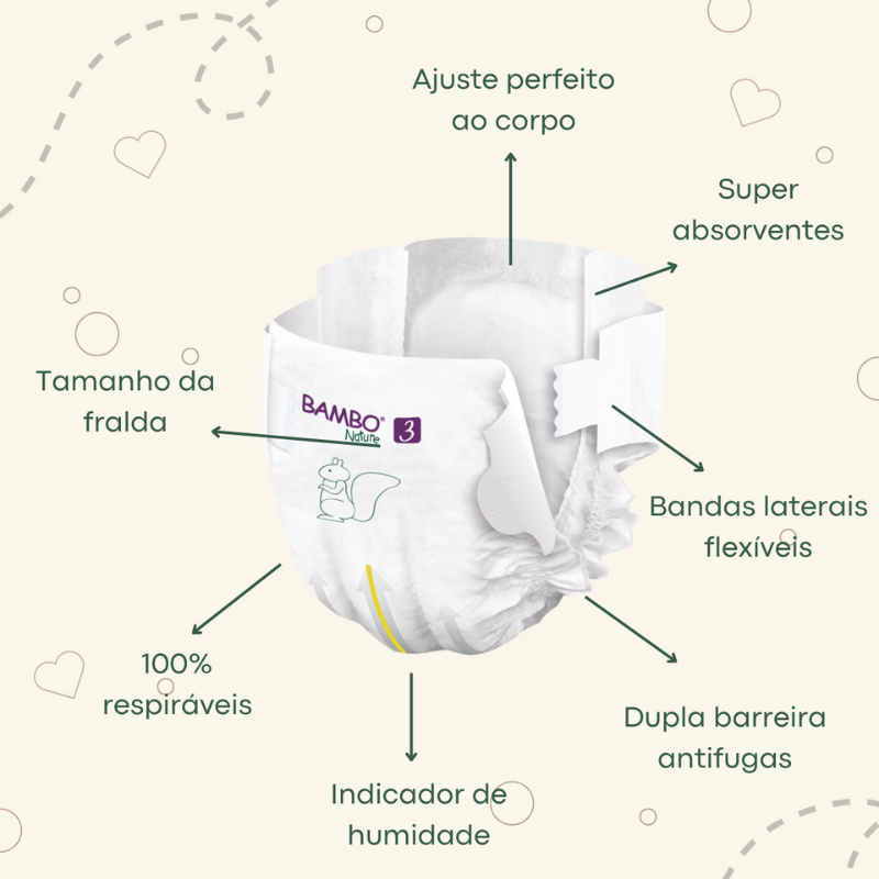 As Fraldas Bambo Nature 5 são macias, confortáveis e ultra absorventes, adequadas para bebés entre os 12 e os 18 quilos.