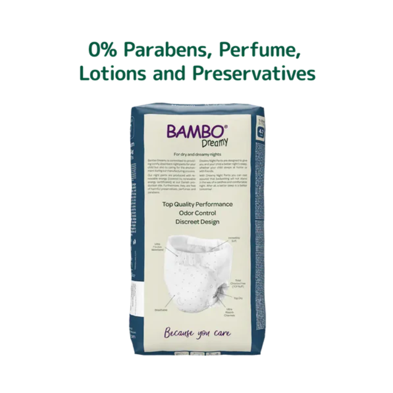 As Fraldas Cueca Dreamy Bambo Nature, ideais para crianças com enurese noturna, oferecem excelente ajuste, segurança e conforto para crianças entre 35 e 50 kg. Com um design discreto e confortável, elas mantêm a criança e a cama secas durante toda a noite, garantindo um sono tranquilo e sem preocupações.