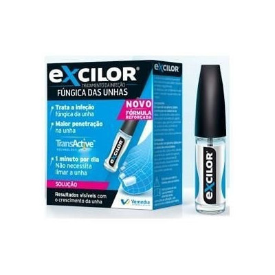 Excilor Solução é um tratamento antifúngico líquido com pincel aplicador, para micoses das unhas. Aplica-se 2 vezes por dia, sem necessidade de lixar. Com a Tecnologia TransActive, penetra profundamente, inibe o fungo e promove unhas saudáveis. Resultados visíveis em 2 semanas.