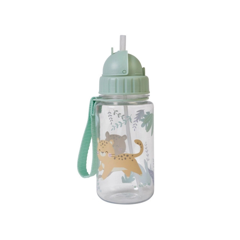 Saro Garrafa Com Palhinha é uma garrafa colorida e prática com uma palhinha de silicone dobrável que sai automaticamente quando a tampa é aberta. Ideal para o seu pequenino levar para a escola ou para viagens. Possui uma alça que permite que seja colocada numa mochila ou num carrinho de bebé. Pode ser lavada na maquina da loiça. Não adequada para microondas. Capacidade: 450ml.