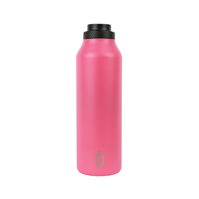 A Runbott Mii Raspberry é uma garrafa termo com isolamento a vácuo e tripla camada com revestimento de cobre, que mantém as bebidas frias até 32h e quentes até 24h, sem condensação exterior.
