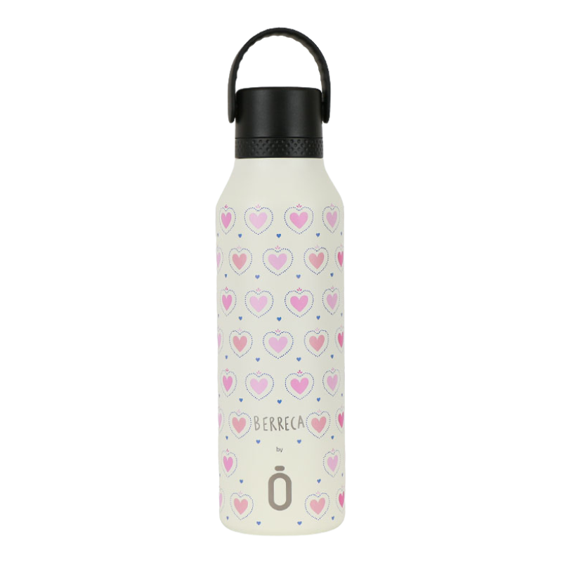 Espalha amor por onde fores com o encantador design de corações da artista Rebeca Barragán! Esta garrafa térmica mantém as bebidas frias até 32h e quentes até 24h, graças ao seu isolamento a vácuo e revestimento cerâmico que preserva o sabor original.
