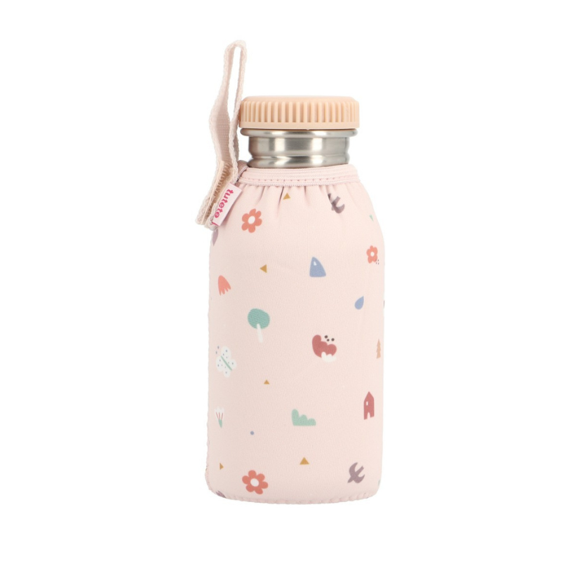 Garrafa Tutete de aço inoxidável com capa Geometric Nature, perfeita para escola, passeios e desporto. Capacidade de 500 ml, resistente, leve e livre de BPA. A partir dos 6 anos.