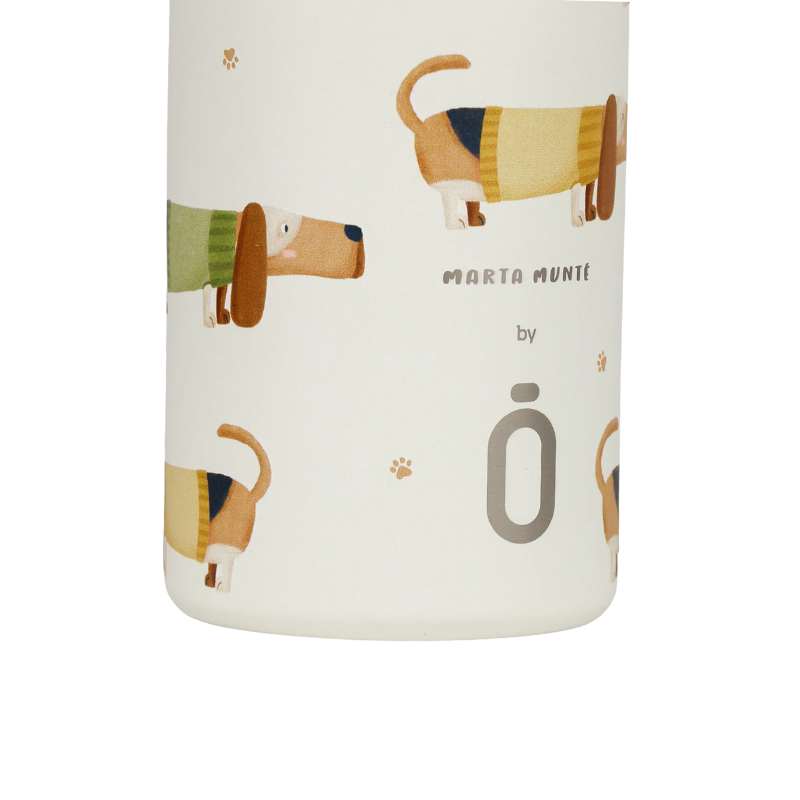 Garrafa térmica de alta performance com ilustração exclusiva de um adorável Basset. Tampa com bocal oculto regulável. Mantém frio 32h e quente 24h. Tecnologias Evertaste® (sem sabor metálico) e Microshield® (antibacteriana). Sem condensação.