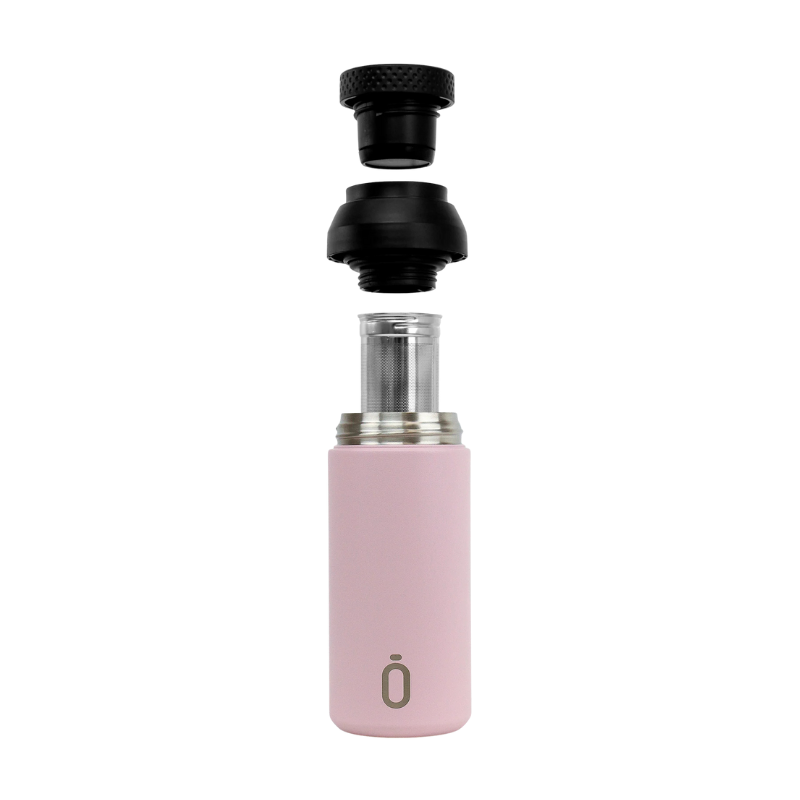 A grande inovação está na sua tampa isolada com infusor incorporado, permitindo preparar chá de folhas soltas ou infusões de fruta de forma simples e direta. Com um design moderno na suave cor "Powder Pink" e uma base de borracha antiderrapante, alia funcionalidade, estabilidade e um toque de estilo sofisticado à sua mesa.