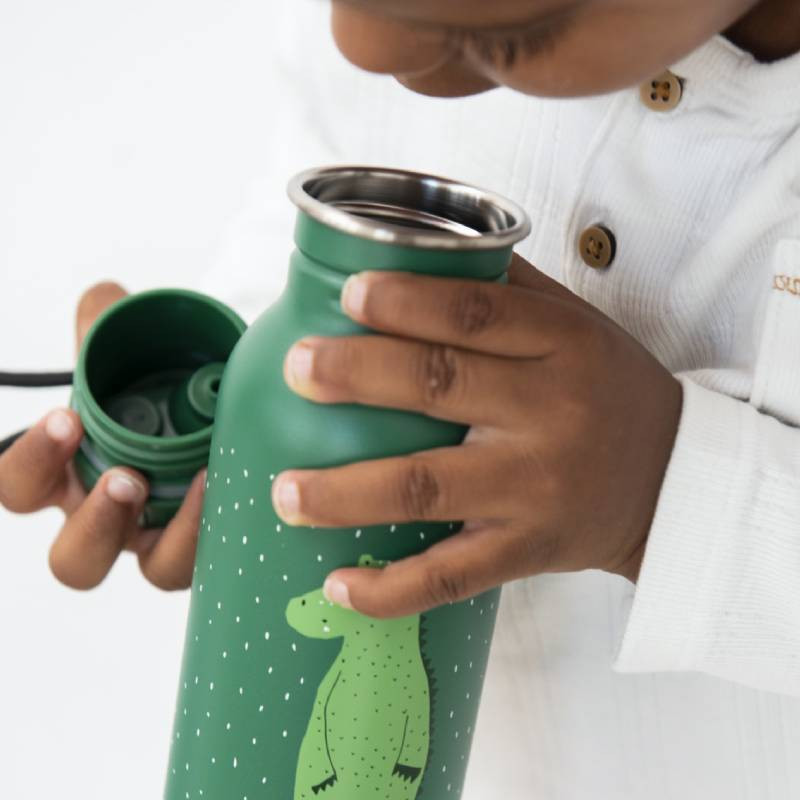 Trixie Baby Mr. Crocodile Garrafa Cantil 500ml é uma garrafa de aço inoxidável, leve e resistente, perfeita para o seu filho levar para a escola, para viagens ou para a praia.