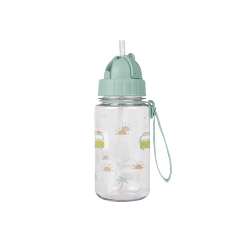 Saro Garrafa Verde Aloha com Palhinha é prática e possui uma palhinha de silicone dobrável que sai automaticamente quando a tampa é aberta.