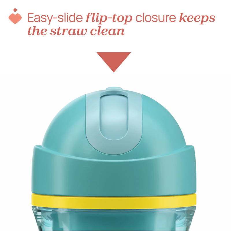 Garrafa infantil de 350 ml com bico para beber, leve e à prova de derrames. Com pega de transporte e tampa fácil de abrir. Ideal para crianças a partir dos 3 anos.