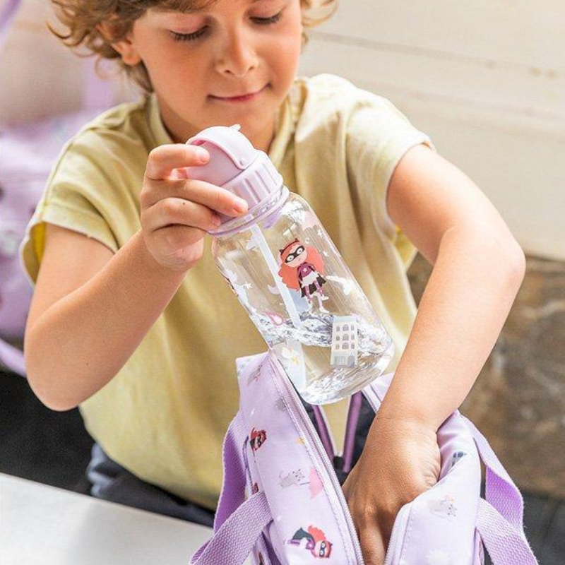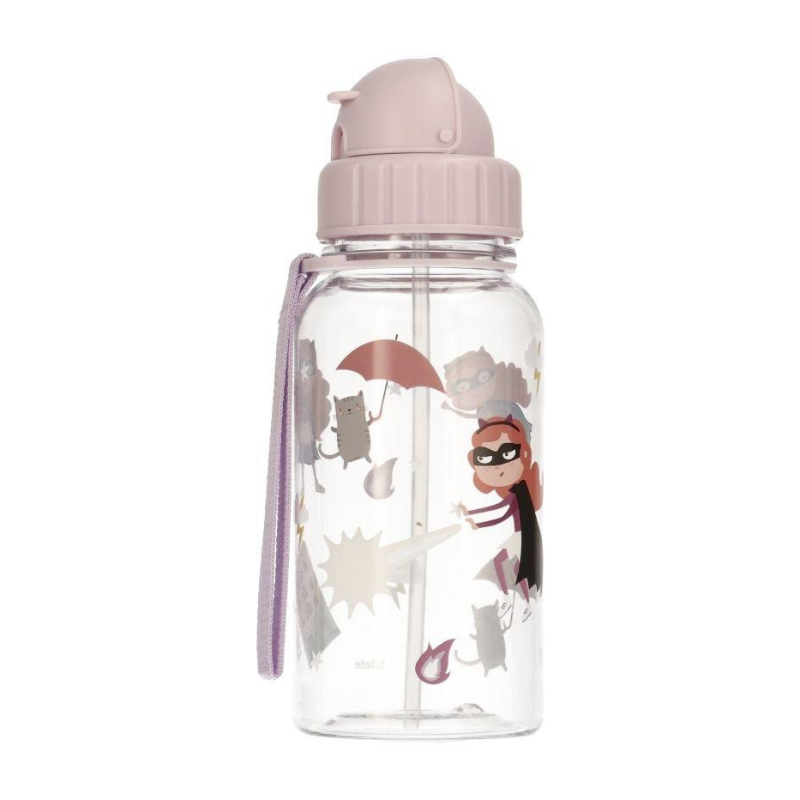 A Garrafa Plástica Tutete é ideal para garantir hidratação durante o dia. Feita em Tritan livre de BPA, conta com palhinha de silicone dobrável e capacidade de 500 ml. Perfeita para a escola ou passeios, com alça para facilitar o transporte.