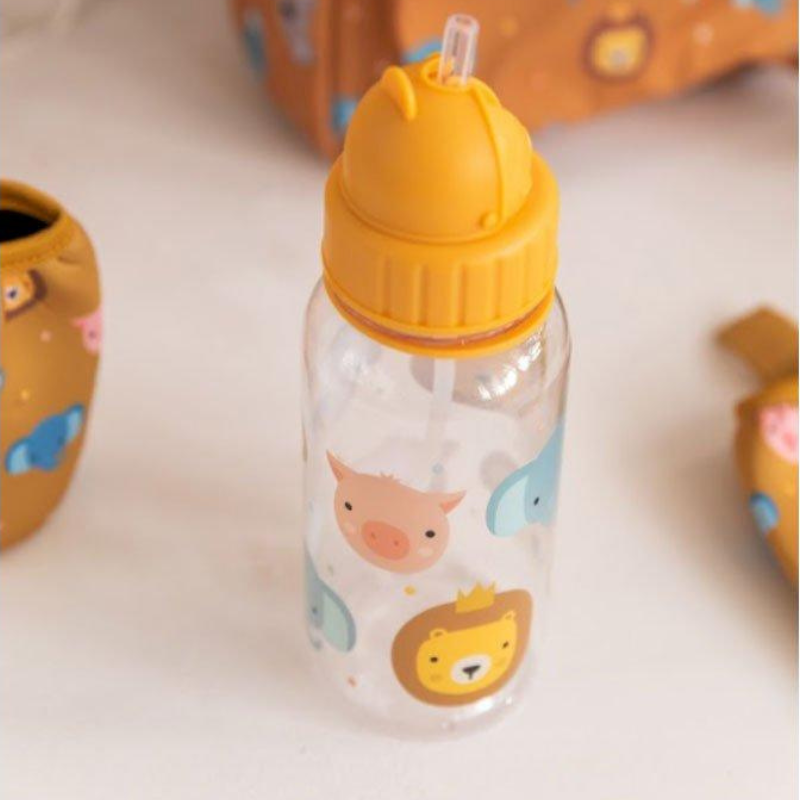 Garrafa infantil com rostinhos de animais, leve, resistente e à prova de vazamentos. Feita em aço inox, perfeita para levar em aventuras!
