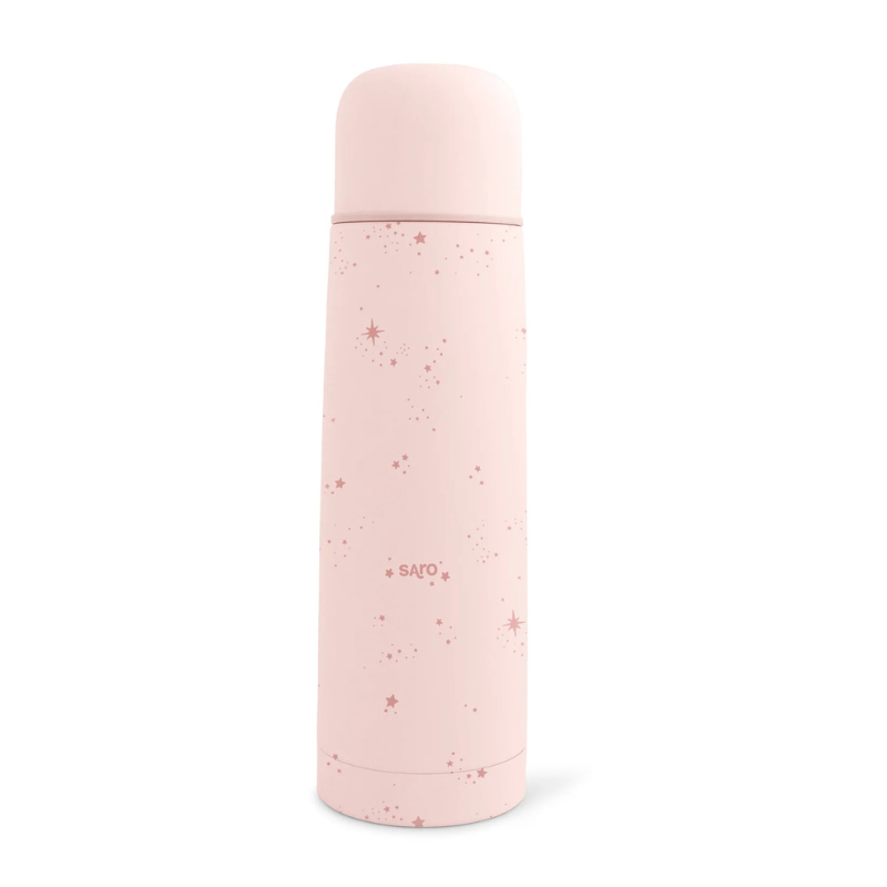 Saro Termo Líquidos Galáxia Rosa mantém as bebidas quentes ou frias durante aproximadamente 6 horas.