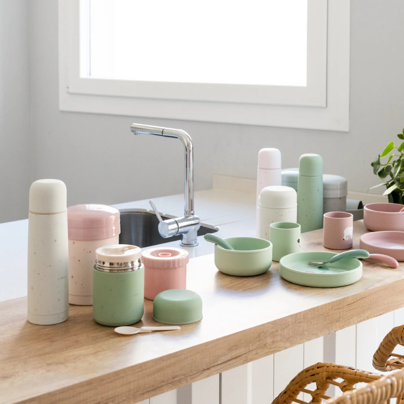 Saro Garrafa Térmica Sólidos com Recipiente Verde é ideal para papas e alimentos sólidos. Prática, segura e feita para facilitar o dia a dia dos pais e o bem-estar dos bebés.