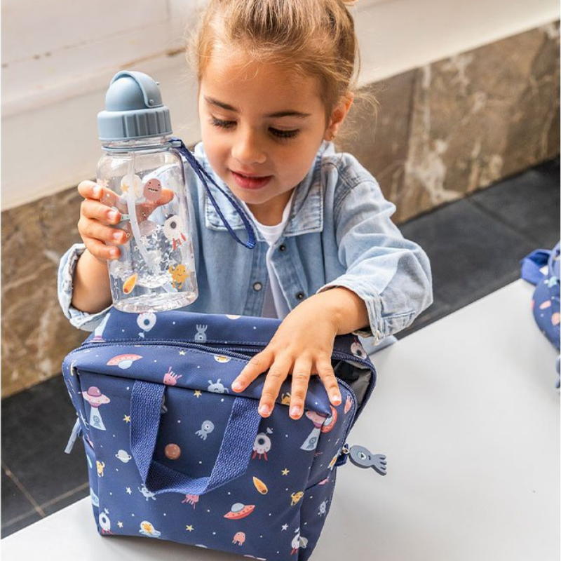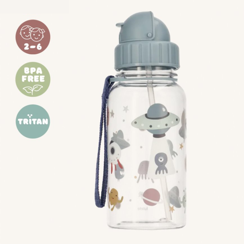 A garrafa ideal para acompanhar os mais pequenos no regresso às aulas ou nos passeios do dia a dia. Com design exclusivo The Martians da Tutete, é feita em Tritan, um material plástico altamente resistente, leve e livre de BPA - seguro para uso infantil.