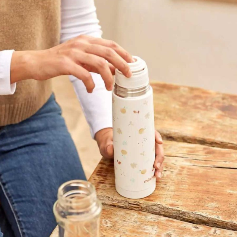 Garrafa térmica Miniland 350ml com isolamento de dupla parede em aço inox que mantém bebidas quentes/frias por +24h. Fecho de segurança click & safe à prova de derrames. Design ergonómico, livre de BPA. Ideal para levar leite ou água para o bebé.