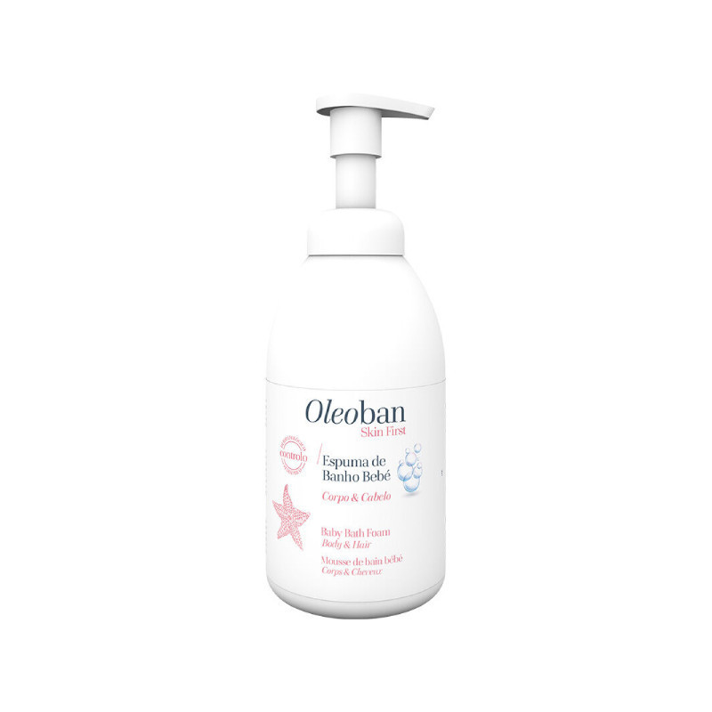 Oleoban Bebé Espuma de Banho é um cuidado 2 em 1 de corpo e cabelo para recém-nascidos, bebés e crianças. Formulado com agentes de limpeza e emolientes suaves que respeitam a pele do bebé e melhoram a sua flexibilidade. Com hidrolisado de proteína de soja para um cabelo fácil de pentear, suave e brilhante. Produto compatível com a pele e couro cabeludo sensível do bebé. Sem sabão.