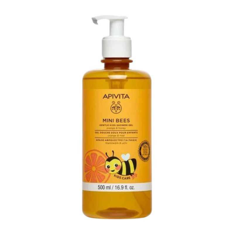 Apivita Mini Bees Gel de Banho concebido para oferecer uma limpeza suave, hidratação e proteção à pele das crianças a partir dos 2 anos.