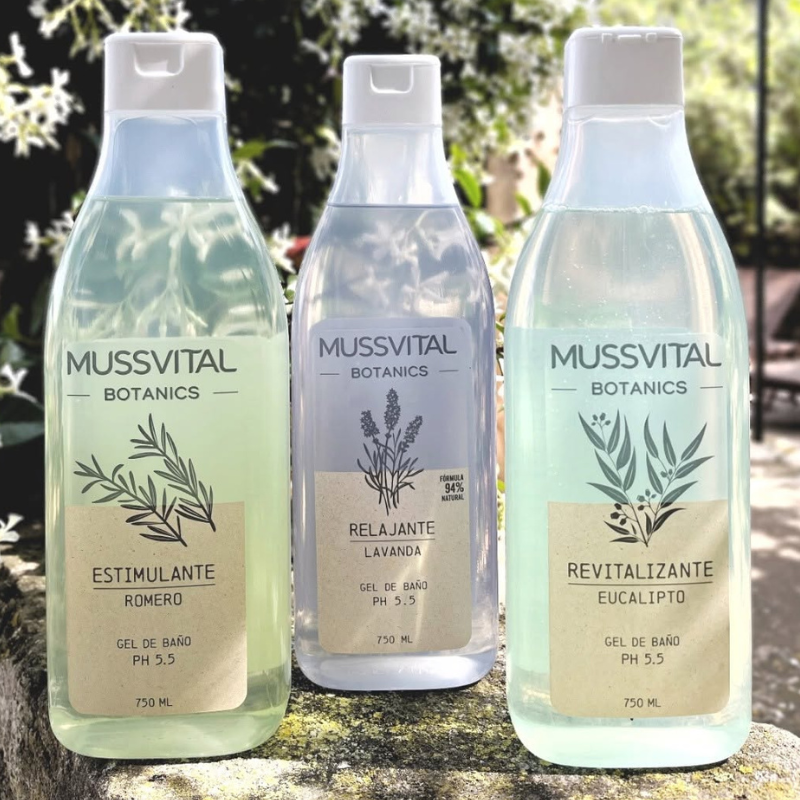 Mussvital Botanics Gel de Banho Lavanda 750ml relaxa o corpo e limpa suavemente a pele de forma natural.