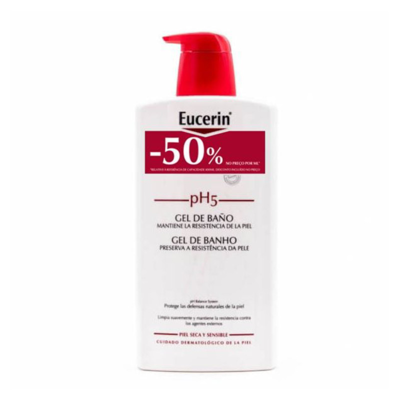 Eucerin pH5 Gel de Banho Pele Sensível 1L Preço Especial sem sabão, indicado para pele seca e sensível.