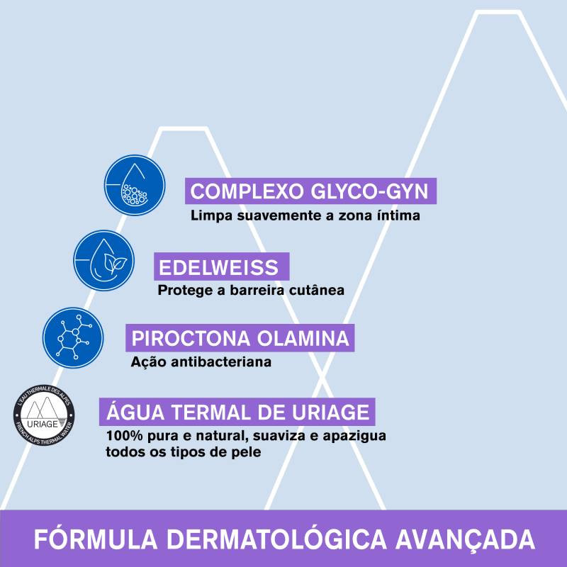 O complexo lavante exclusivo GLYCO-GYN, composto por glicoésteres e glicoflavonoides de Edelweiss, promove uma limpeza delicada e respeitosa. O pH alcalino (pH 8), combinado com a ação da piroctona olamina, ajuda a reequilibrar a flora íntima, prevenindo desconfortos futuros.