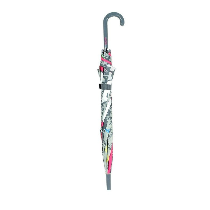 Colorido, seguro e leve, ideal para os dias de chuva! Com estrutura resistente, fecho com personagem em silicone e pega ergonómica para mãos pequeninas.