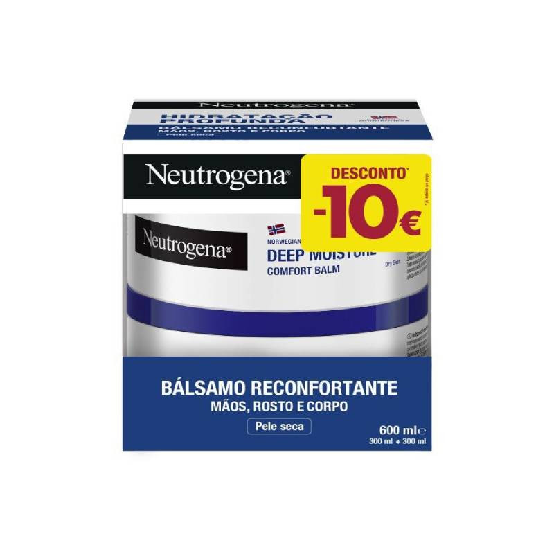 Neutrogena Bálsamo de Hidratação Profunda 2x300ml Desc. -10€ é um pack composto por 2 embalagens de 300ml. Neutrogena Bálsamo de Hidratação não gorduroso e reconfortante hidrata intensamente e fortalece a barreira da pele profunda durante 72 horas.
