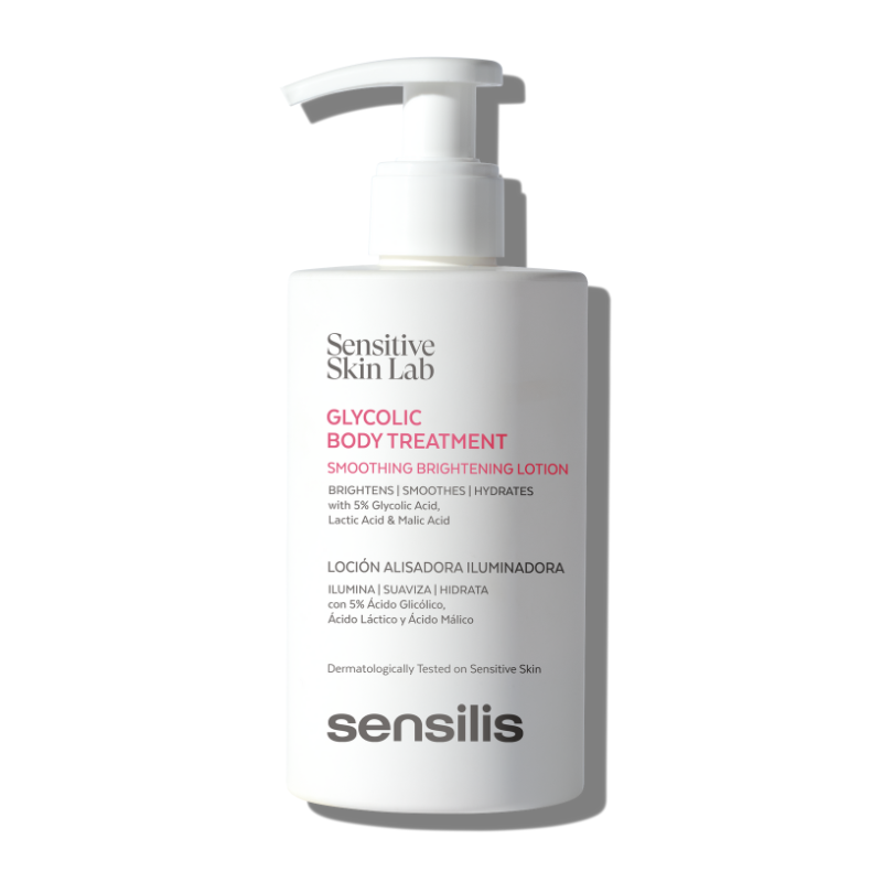 Sensilis Glycolic Body Treatment é uma loção corporal ultrafluida com 9% de ácidos esfoliantes. Renova, hidrata e ilumina a pele, suaviza rugosidades e uniformiza o tom. Com manteiga de karité e diosmina. Ideal para pele sensível.