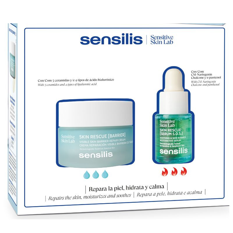 Sensilis Skin Rescue Protocolo de Reparação ajuda a reparar, hidratar e acalmar a pele. Composto por: