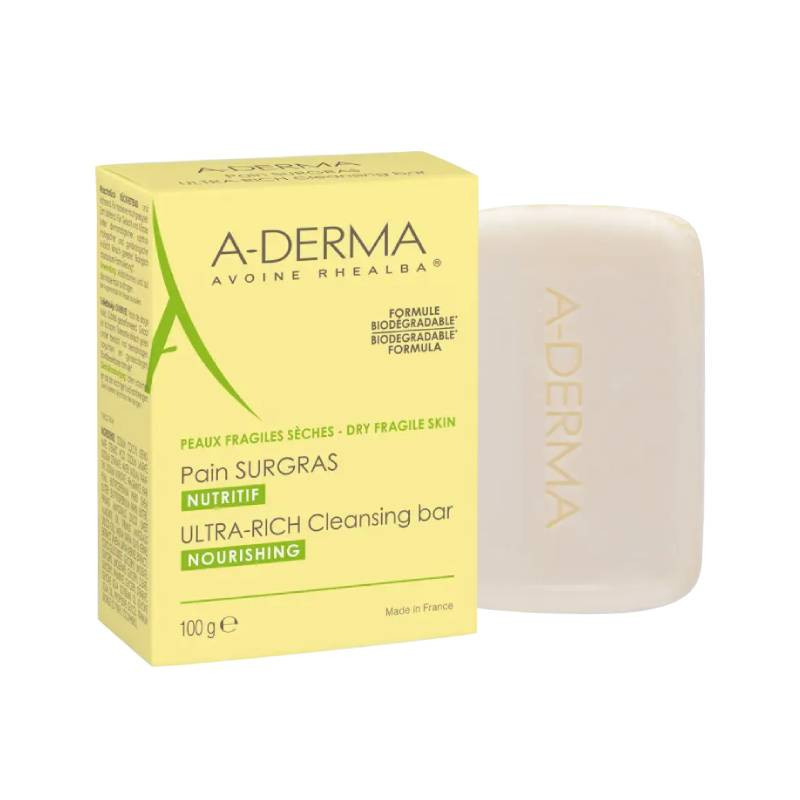 A-Derma Pain Ultrarrico e Nutritivo para pele seca e frágil limpa, nutre, protege e amacia suavemente a pele.
