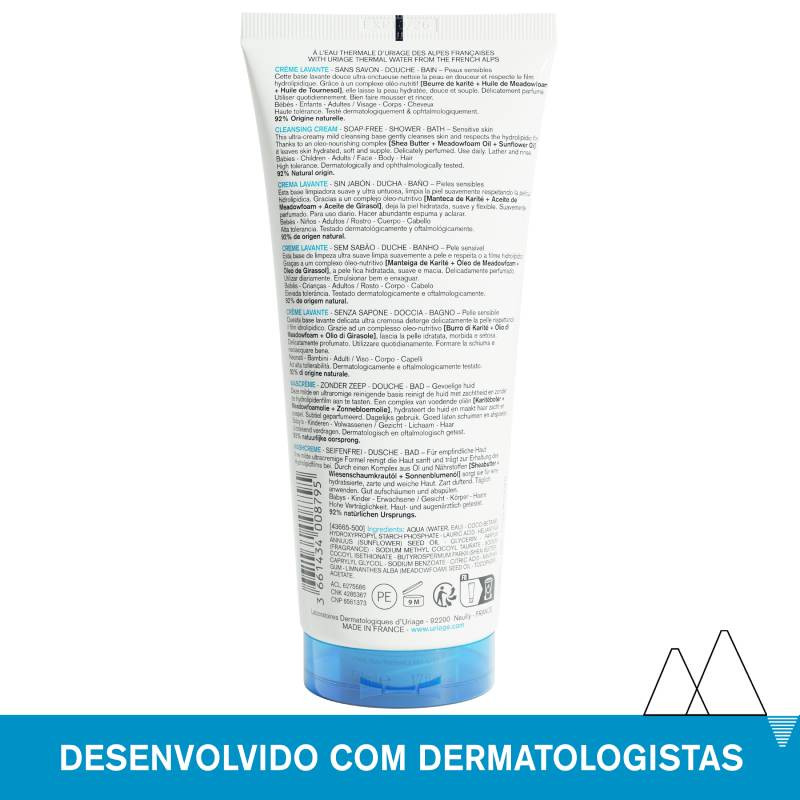 Água Termal de Uriage - Base de limpeza suave - Glicerina - Extrato de Illipé - Ativos Hidratantes e Suavizantes Hipoalergénico - Sem sabão - Testado oftalmologicamente