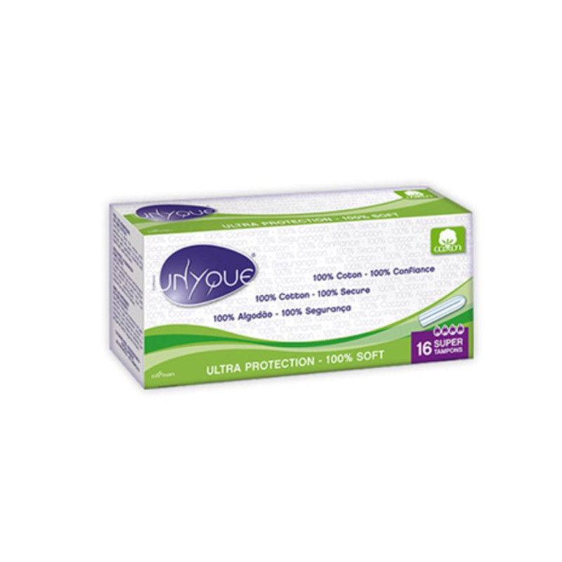 Unyque Tampão Super é um tampão 100% algodão, ideal para os dias de fluxo moderado ou abundante. Foram criados a pensar nas mulheres ativas e com pele sensível que querem limitar qualquer contato da pele com materiais sintéticos, mantendo-se sempre frescas, limpas e seguras, com produtos ecologicamente corretos.