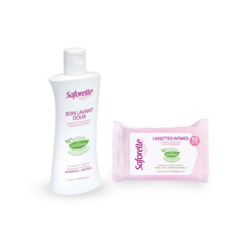 Saforelle Solução de Lavagem + Toalhetes Íntimos é um pack composto por 2 cuidados para a higiene íntima feminina: Saforelle Solução de Lavagem (250ml) e Saforelle Toalhetes Íntimos (10 unidades).