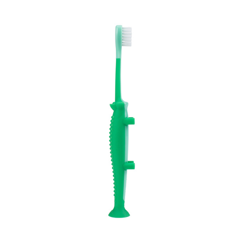 A Escova de Dentes Dr. Brown's para 1 a 4 anos transforma a higiene oral numa experiência lúdica e positiva. Com um divertido design de crocodilo que capta a atenção, esta escova é concebida com o tamanho, forma e maciez perfeitos para a boca em crescimento, as gengivas sensíveis e as primeiras tentativas de escovagem autónoma. As suas cerdas suaves mas eficazes limpam profundamente, enquanto a ventosa na base a mantém limpa e estável. Um aliado essencial para criar rotinas de higiene duradouras.