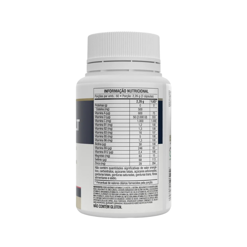 ✔️Fórmula avançada combina vitaminas e minerais com N-acetil L-cisteína (NAC), auxiliando na proteção do organismo, fortalecimento do sistema imunológico, melhor metabolismo e absorção de nutrientes.