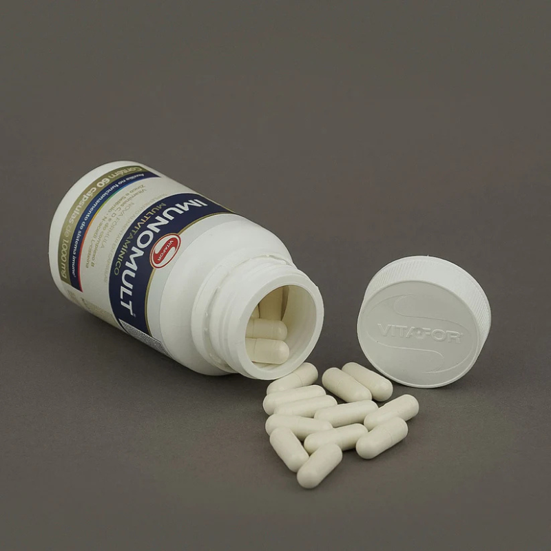 Imunomult é um suplemento multivitamínico completo, com vitaminas, minerais e NAC, desenvolvido para reforçar o sistema imunitário e compensar carências nutricionais comuns no dia a dia.