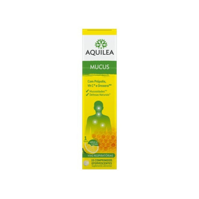 AQUILEA MUCUS contém N-Acetilcisteína, Bromelaína, Própolis, Vitamina C e Drosera. A vitamina C contribui para o funcionamento normal do sistema imunitário e a drosera é uma planta que contribui para manter o nível ideal das secreções e saúde das vias respiratórias.
