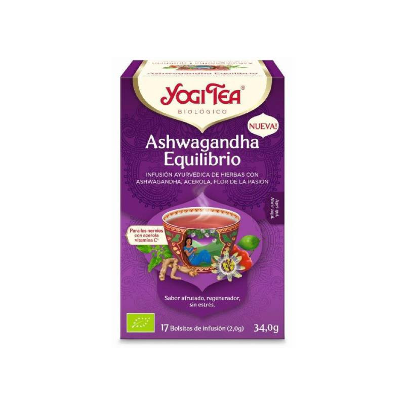 Yogi Tea Bio Chá Ashwagandha Equilíbrio Saquetas x17 é uma infusão que ajuda a manter o equilíbrio, perfeito para uma pausa relaxante.