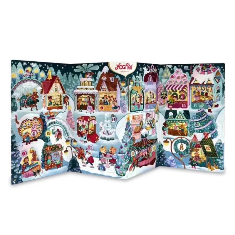 Calendário do Advento Yogi Tea 2025 com 24 chás biológicos de sabores festivos. Inclui Christmas Tea, Gengibre Limão, Canela e mais. Edição limitada de Natal.