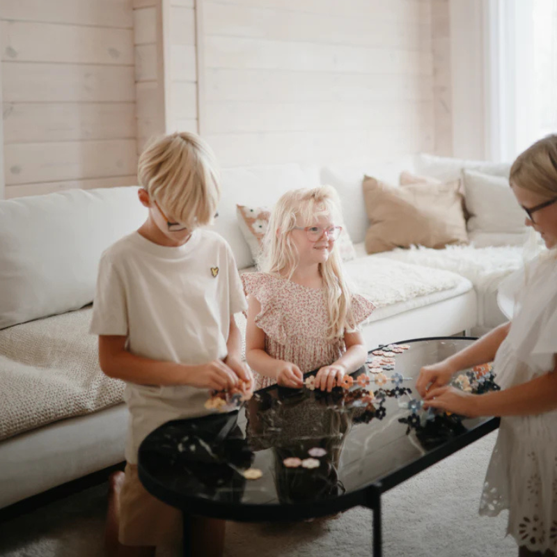 - Cores suaves que inspiram a calma: A paleta de cores soft e harmoniosa ajuda a criar um ambiente de brincadeira focado e sereno, onde as cores se misturam para formar designs únicos e bonitos.