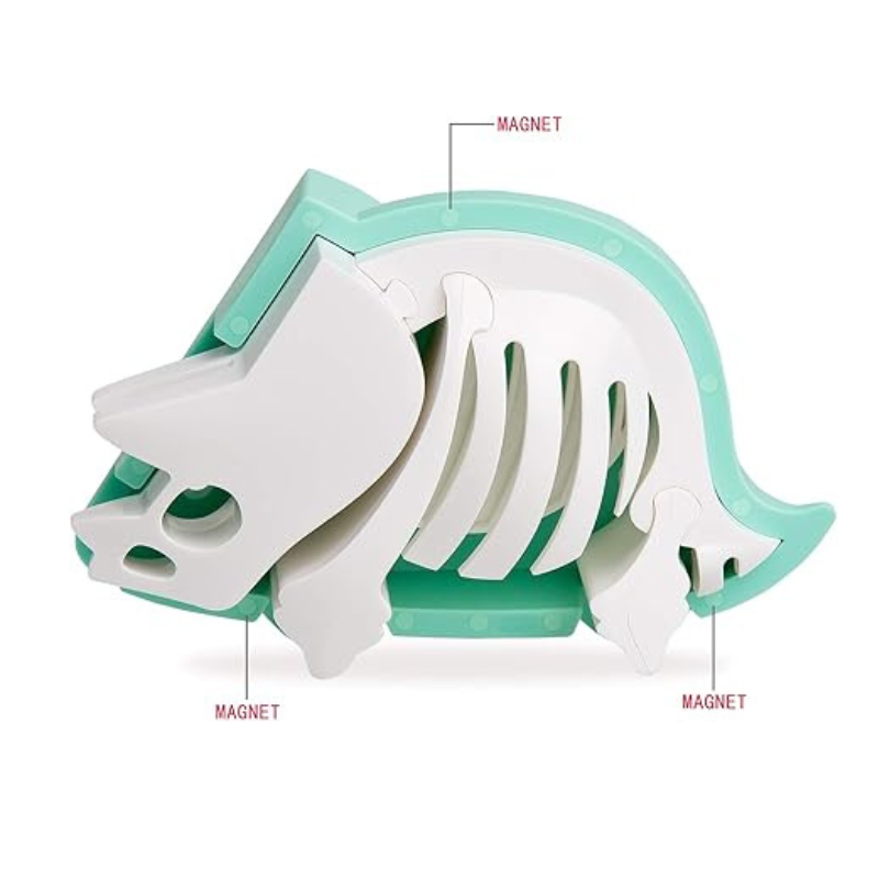 Um brinquedo educativo 2-em-1 que encanta e ensina! Primeiro, monta-se o esqueleto, depois a forma externa com peças magnéticas de qualidade. Estimula a motricidade fina, o raciocínio lógico e oferece uma experiência sensorial única. Inclui um livrinho interativo com história e atividades. Perfeito para mentes curiosas a partir dos 3 anos.
