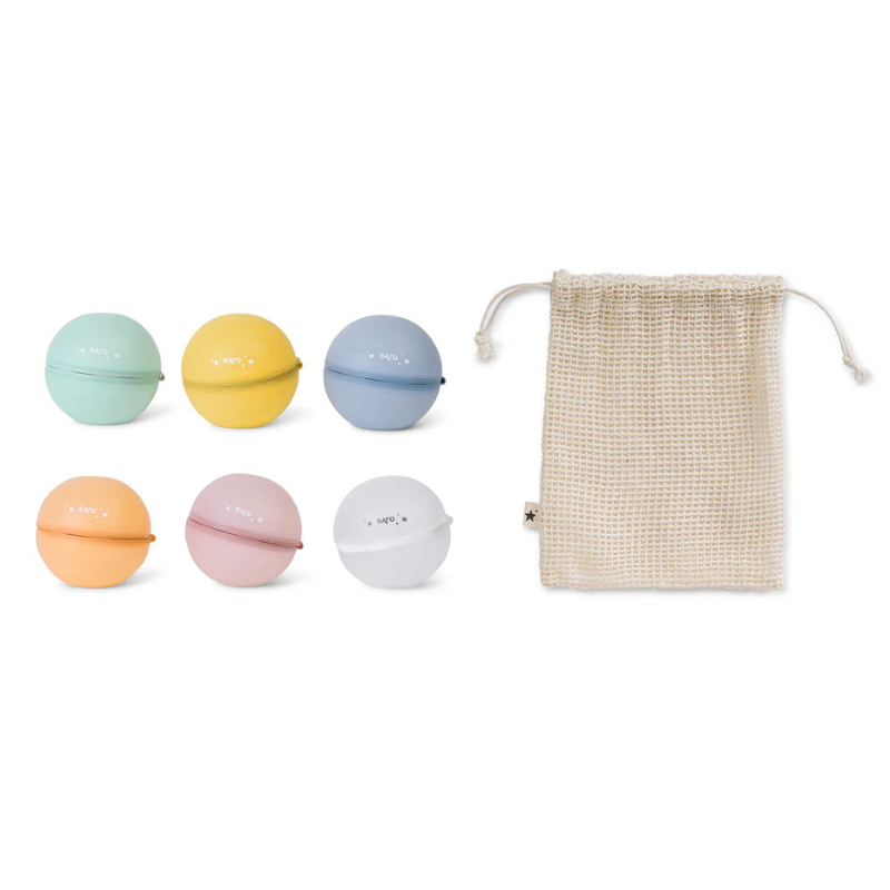 Reutilizáveis e sustentáveis: Não geram resíduos. Usa-os vezes sem conta – adeus plástico descartável.Silicone premium macio e flexível: Silicone premium macio e flexível: Seguro para as mãos pequenas, não magoa ao atirar.