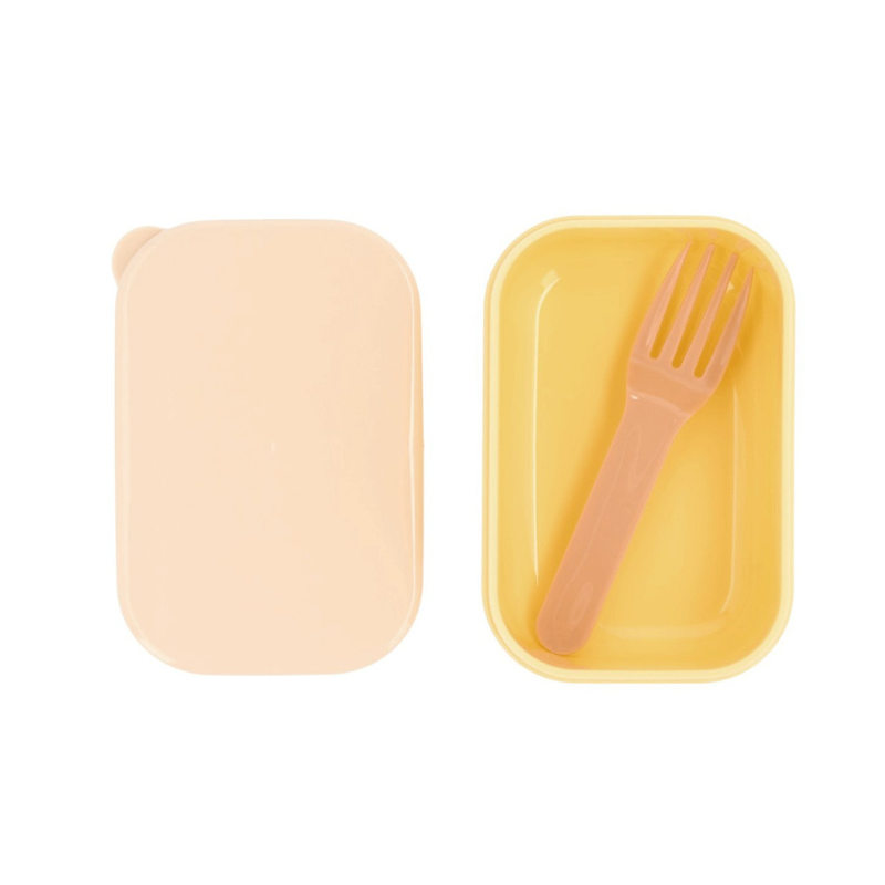 Caixa de frutas Tutete com garfo incluído, ideal para transportar snacks ou fruta cortada dentro da lancheira. Compacta, prática e segura para os mais pequenos!