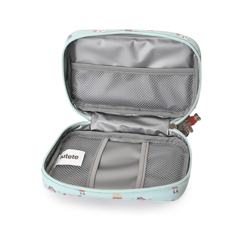 Tutete Bolsa Medicamentos Três Porquinhos é ideal para transportar medicamentos ou produtos de primeiros socorros com segurança e organização. Interior isolante e bolsos práticos.