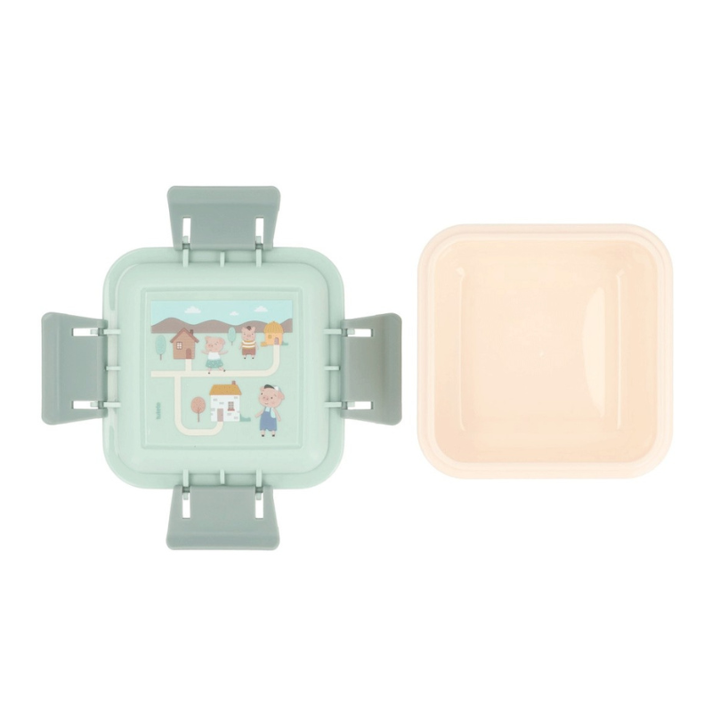 Cada lancheira apresenta um design encantador na tampa, que vai conquistar crianças e adultos! O sistema de fecho com 4 cliques garante que a tampa fique bem segura, mantendo os alimentos frescos e evitando derrames. A sua estrutura leve em polipropileno livre de BPA é segura para os alimentos e resistente ao uso diário.