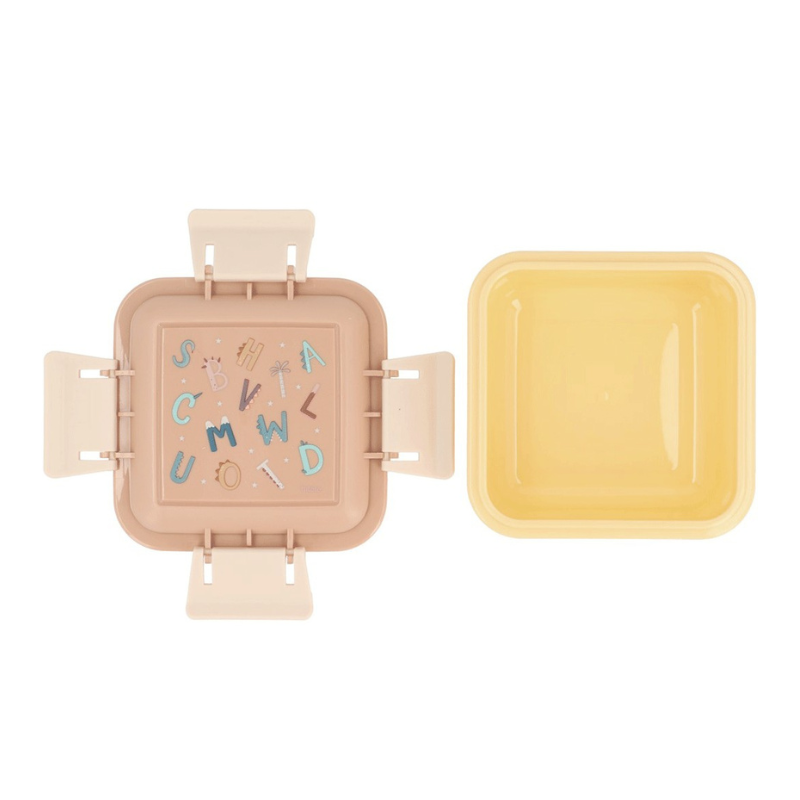 A lancheira pequena Letras da Tutete é ideal para levar snacks ou o pequeno-almoço. Com ilustração divertida na tampa, é leve, segura e fácil de abrir pelos mais pequenos.