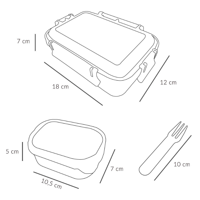 - Inclui uma divisória interna removível com um garfo prático (10 cm), ideal para frutas, snacks ou alimentos preparados