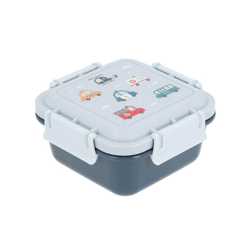 A lancheira pequena Carros da Tutete é ideal para levar snacks ou o pequeno-almoço. Com ilustração divertida na tampa, é leve, segura e fácil de abrir pelos mais pequenos.